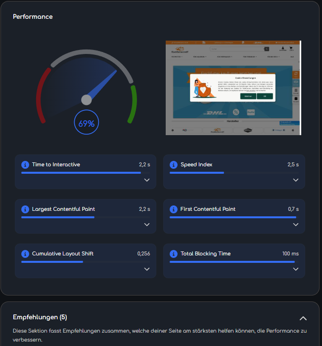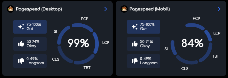 Mit dem Performance Widget erkennst du sofort den Zustand deiner Seite.
