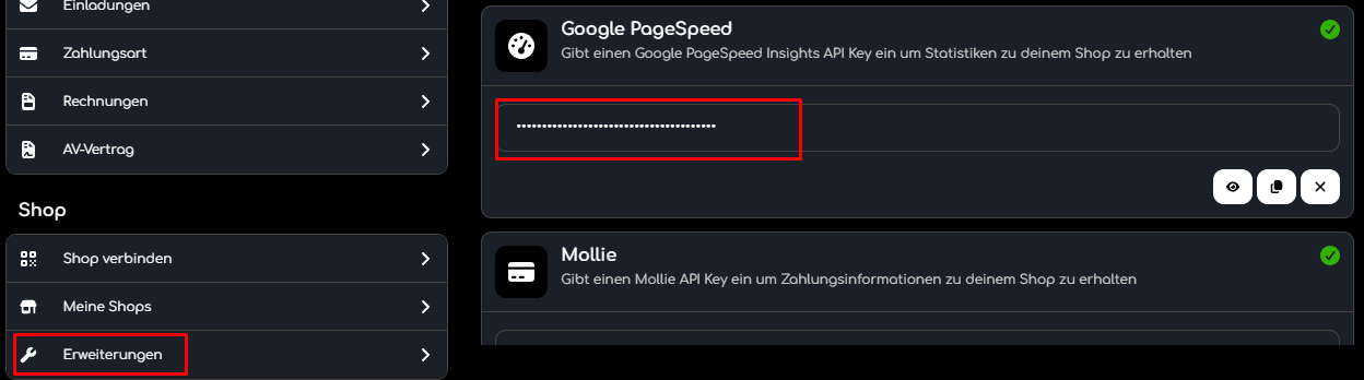 Den Key fügst du dann unter "Erweiterungen" ein: