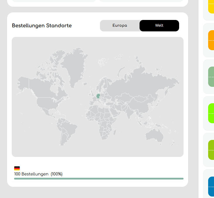 Hier werden auch die prozentualen Anteile pro Land für die letzten 100 Bestellungen angezeigt.