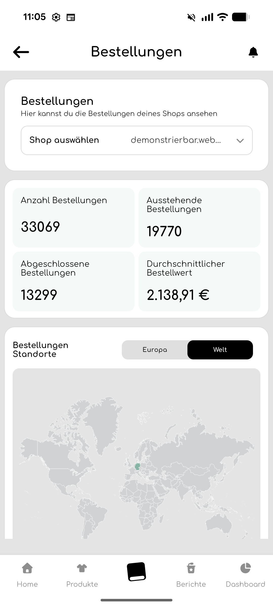 - Durchschnittlicher Bestellwert: der durchschnittliche Bestellwert aus allen Bestellungen dieses Shops