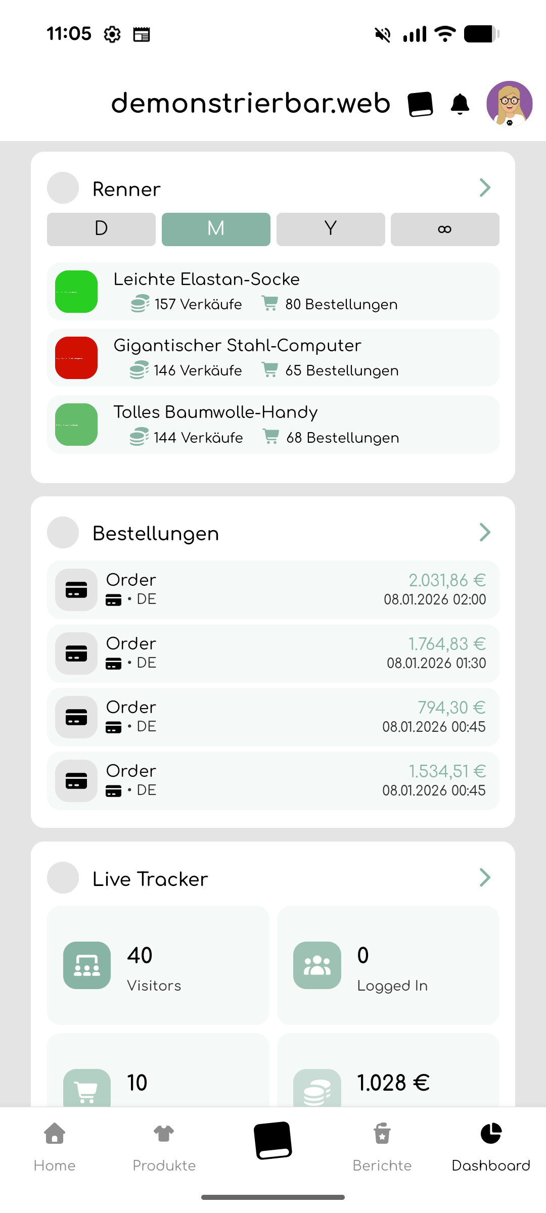 Bitte beachte, dass die angezeigten Daten erst mit etwas Verzögerung synchronisiert werden und es somit unter Umständen etwas dauern kann, bis neue Bestellungen in der Liste erscheinen. Bis dahin kannst du sie aber über die Live-Bestellungen auf der Home-Seite verfolgen.