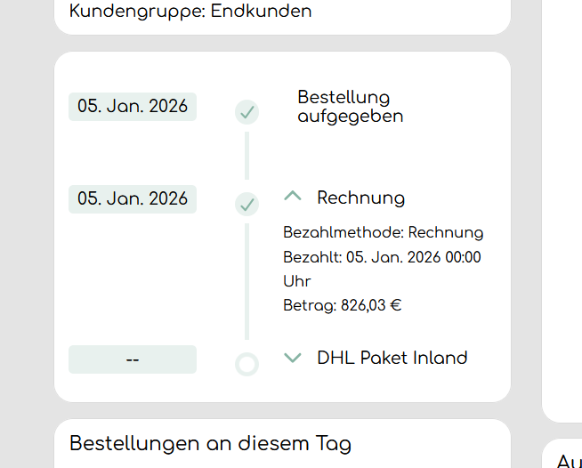 Bestellungen an diesem Tag