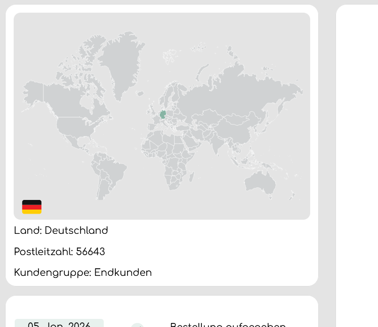 Oben links siehst du das Land und durch die Postleitzahl auch die Region, von der aus die Bestellung eingegangen ist. Zudem wird dir angezeigt, von welcher Kundengruppe sie aufgegeben wurde.