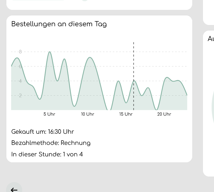 In dem Liniendiagramm ist dargestellt, wie die Verteilung der Bestellungen an dem Tag, an dem die betrachtete Bestellung eingegangen ist, aussah.