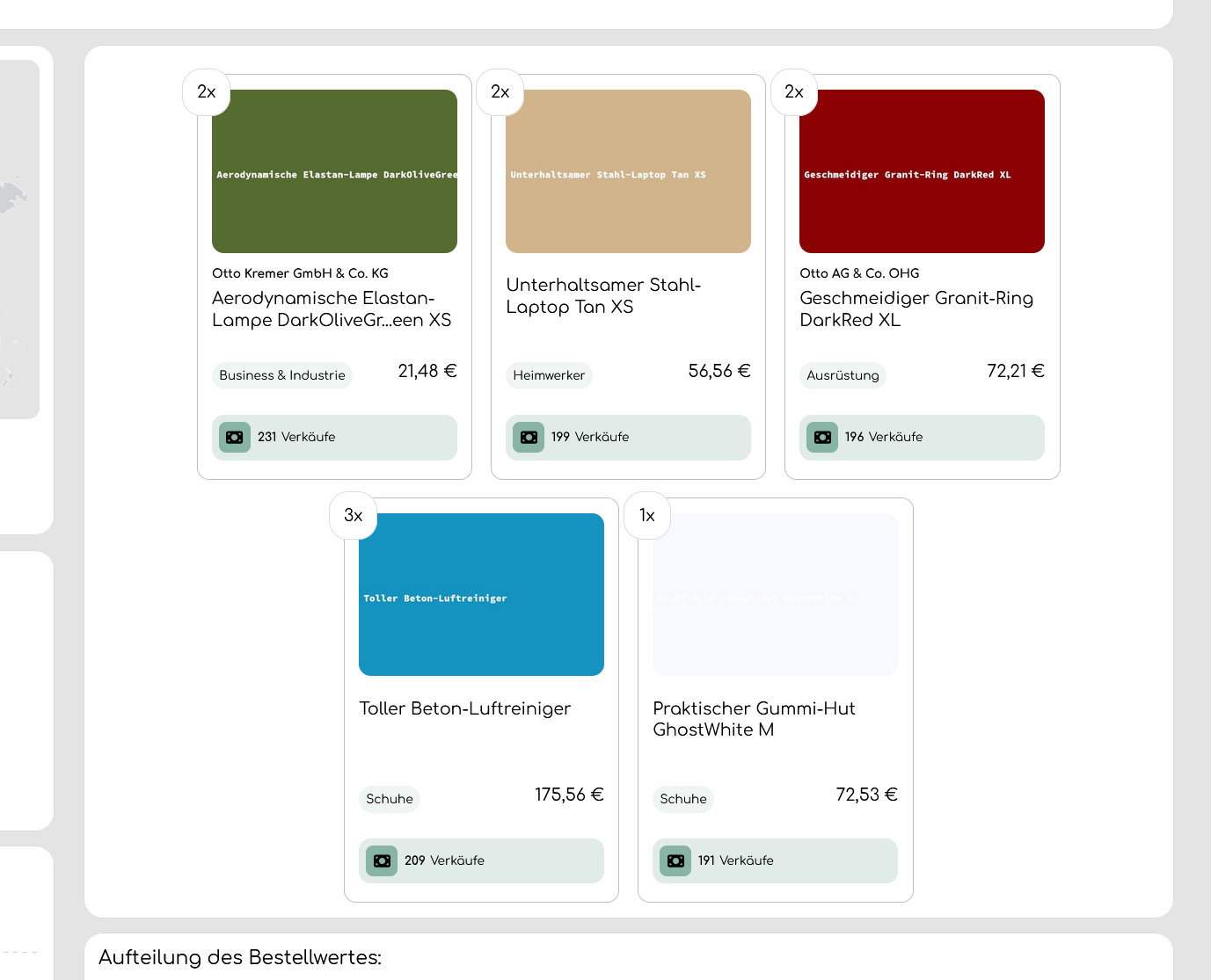 Aufteilung des Bestellwertes