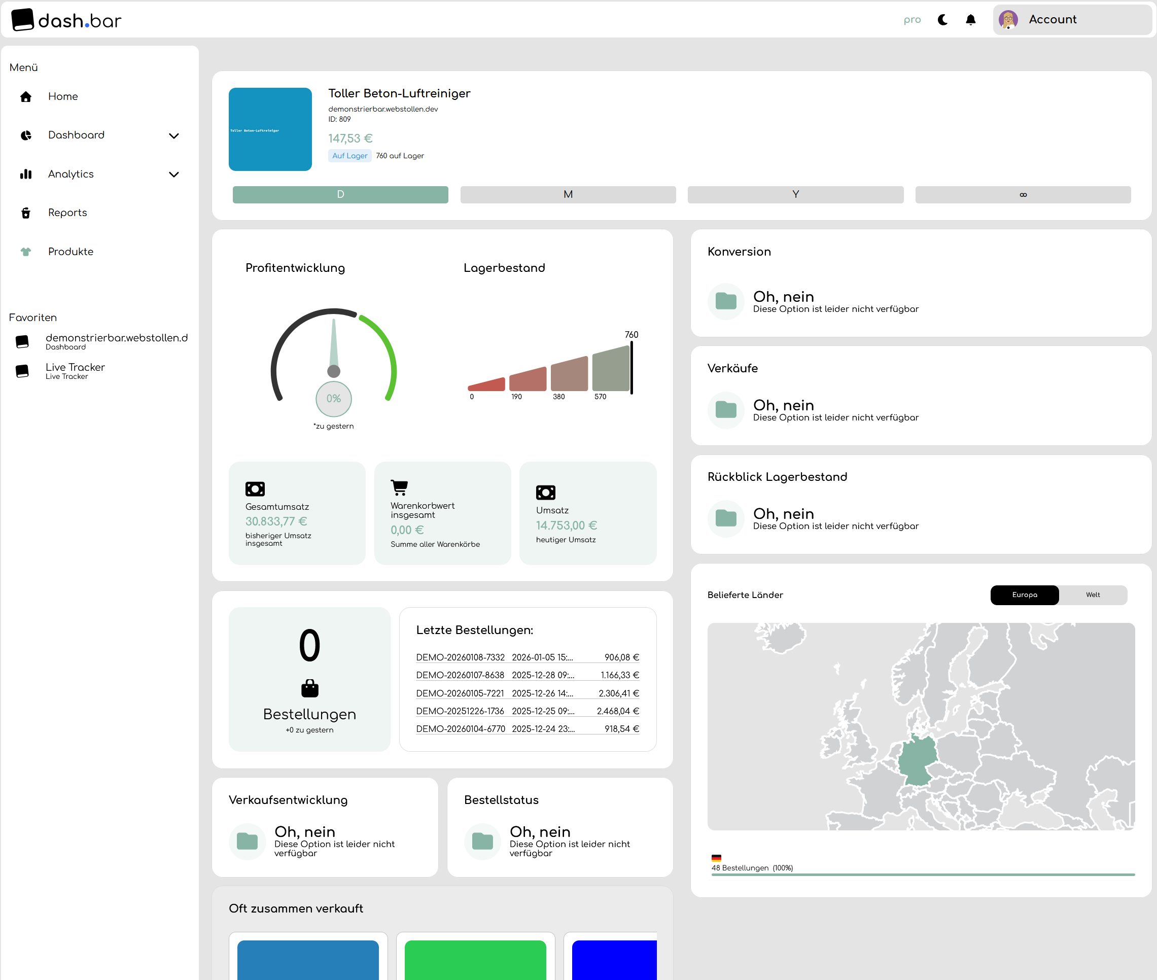 Analytics - Bestellungen - Einzelansicht